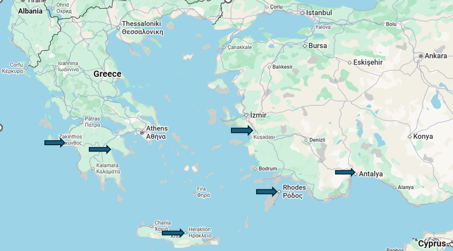 After two unpleasant sea days, we stopped in Antalya Turkey. We had already been to Antalya for 5 nights back in October, so there is a lot already in the blog about Antayla from our first stay. When we visited for the cruise stop with Erin and Colleen, we did a walking tour, hit the obvious tourist stops (a couple mosques and Hadrian’s Gate), did a little shopping, and had a late lunch at a restaurant right on the water. We had much welcome sunny and warm weather!